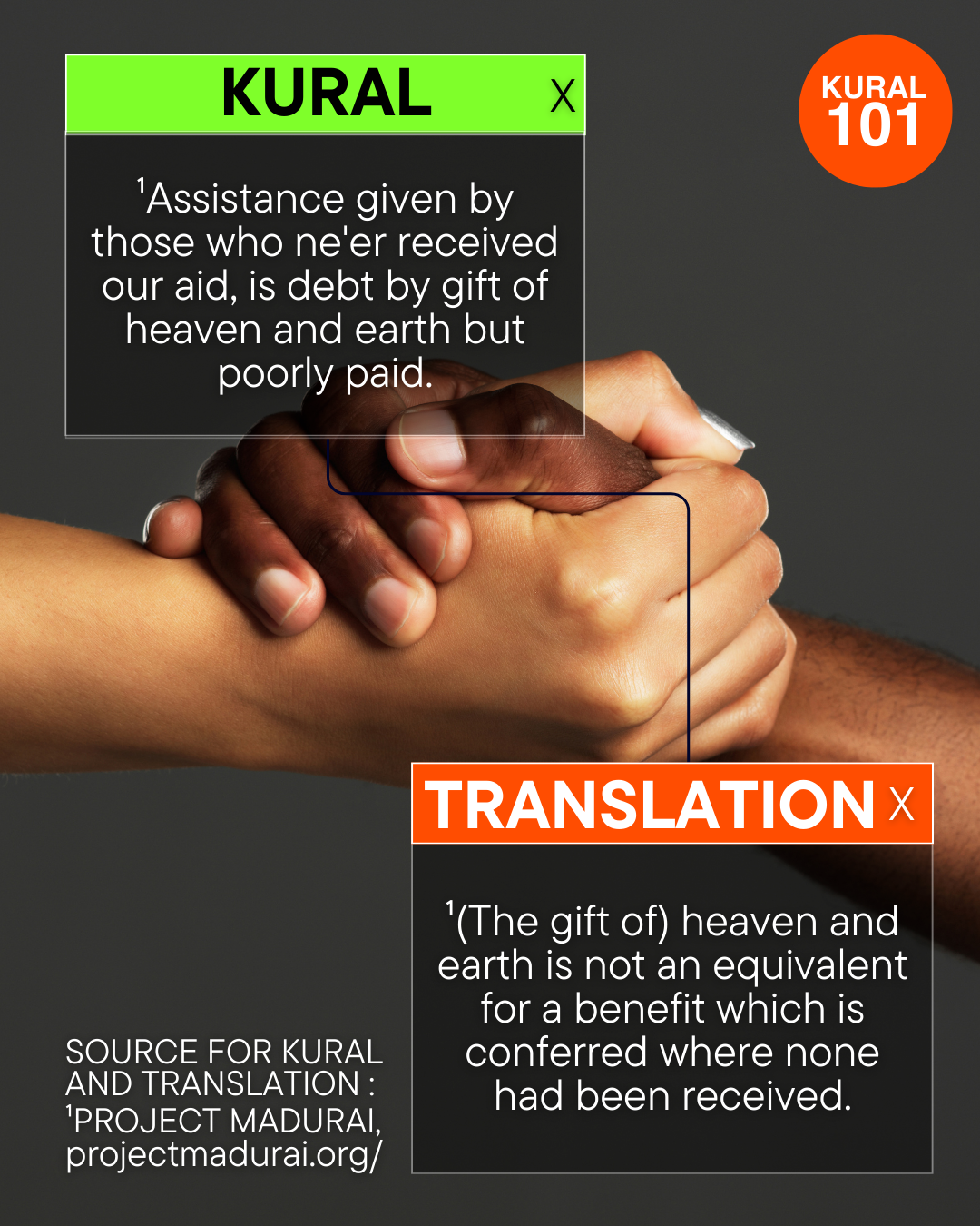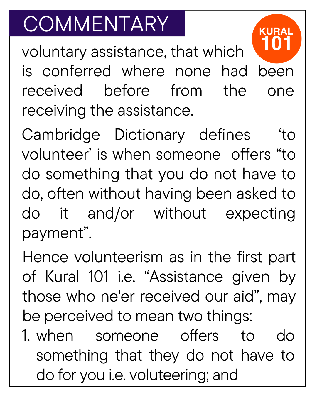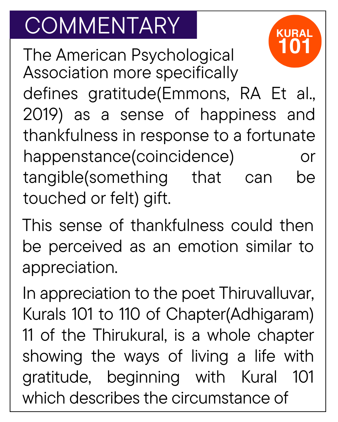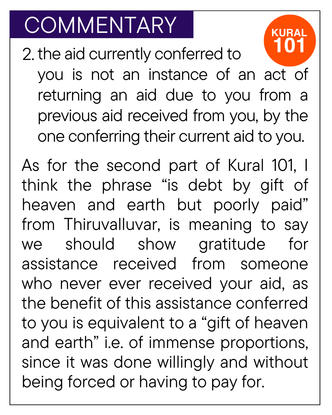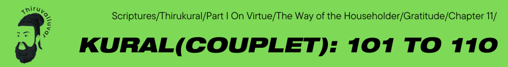 Kural(Couplet): 101 to 110 The remaining kural (couplets) from 101 to 110 will be updated here from time to time. Chapter 11 Title Banner source: Kural and translation, The Thirukural, The Himalayan Academy